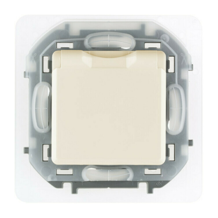 Розетка Legrand INSPIRIA, скрытый монтаж, с заземлением, с крышкой, со шторками, слоновая кость, 673741