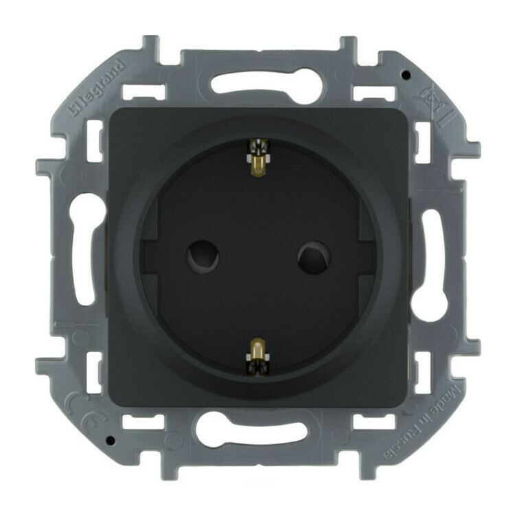 Розетка Legrand INSPIRIA, скрытый монтаж, с заземлением, со шторками, антрацит, 673733